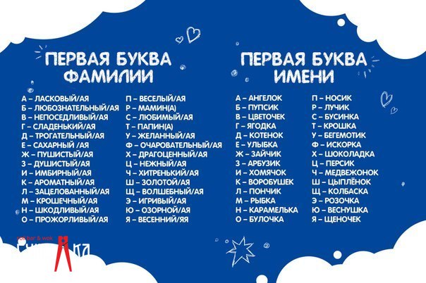 Здесь можно дать волю фантазии. Но, разумеется, с согласия любимого человека. Кодовые слова должны быть оригинальными, непохожими на другие, носить индивидуальный характер.