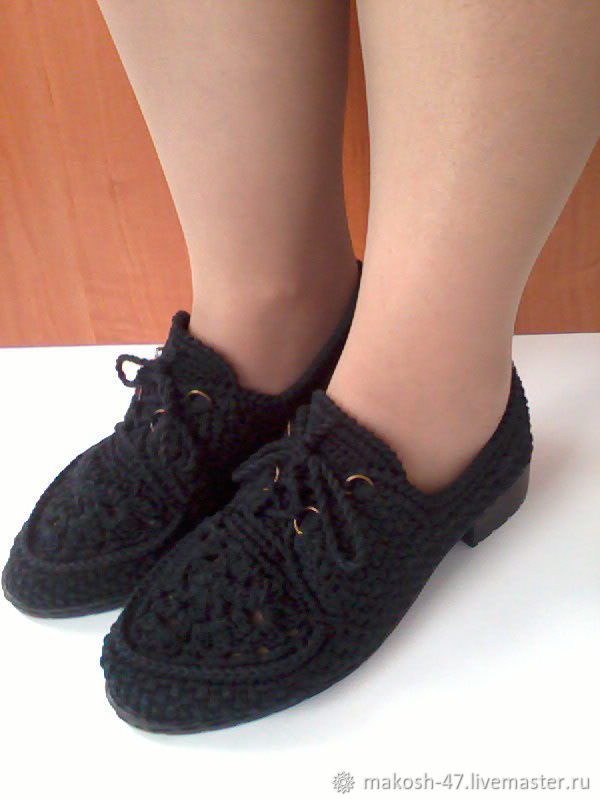 Похожи на мокасины, но тверже. Шнурки вдеваются в 4 дырочки и далее идут по верхнему краю туфлей.