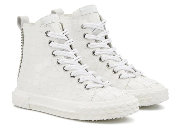 Если вам нравятся высокие кроссовки, но вы бы предпочли пару без золотого акцента, вам повезло! Очень желанный Golden Goose Slide High Top доступен в белой коже с ледяной замшей без золота.