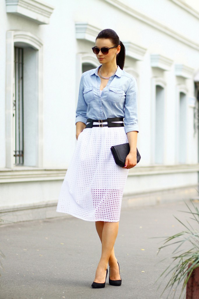 Джинсовая рубашка с юбкой — интересные образы на каждый день