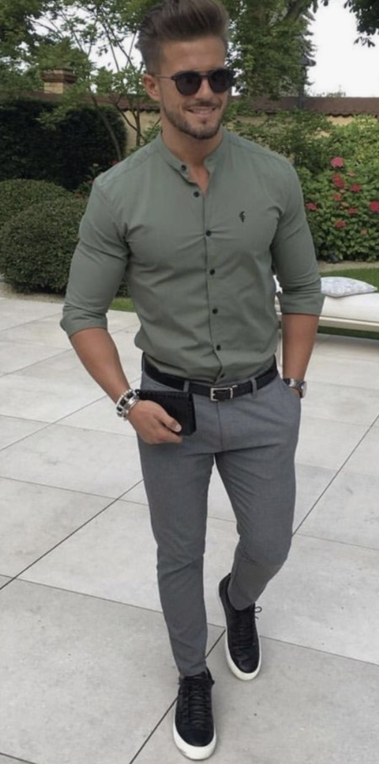 Быть повседневным не означает, что вы должны жить в футболках. Если вы носите легкие брюки чинос с расстегнутыми пуговицами, это улучшит ваш образ, не вызывая при этом перегрева. Если вы стройный парень, обязательно наденьте облегающую рубашку.