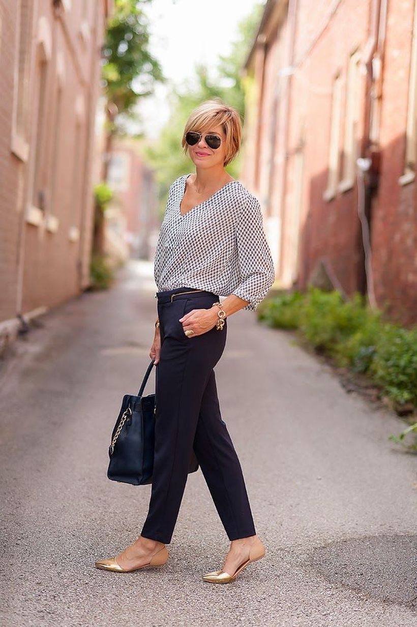 На фото ниже представлены модные образы для женщин сорока лет и старше.
