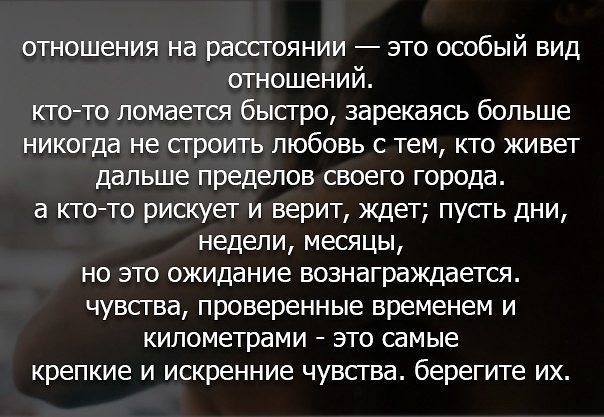 - Находясь на расстоянии и скучая, зачастую люди начинают друг друга больше ценить.