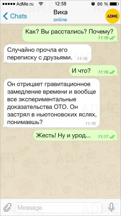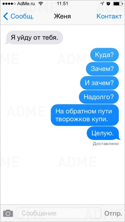 - То смс, в котором ты просишь денег, у меня не доставлено.
