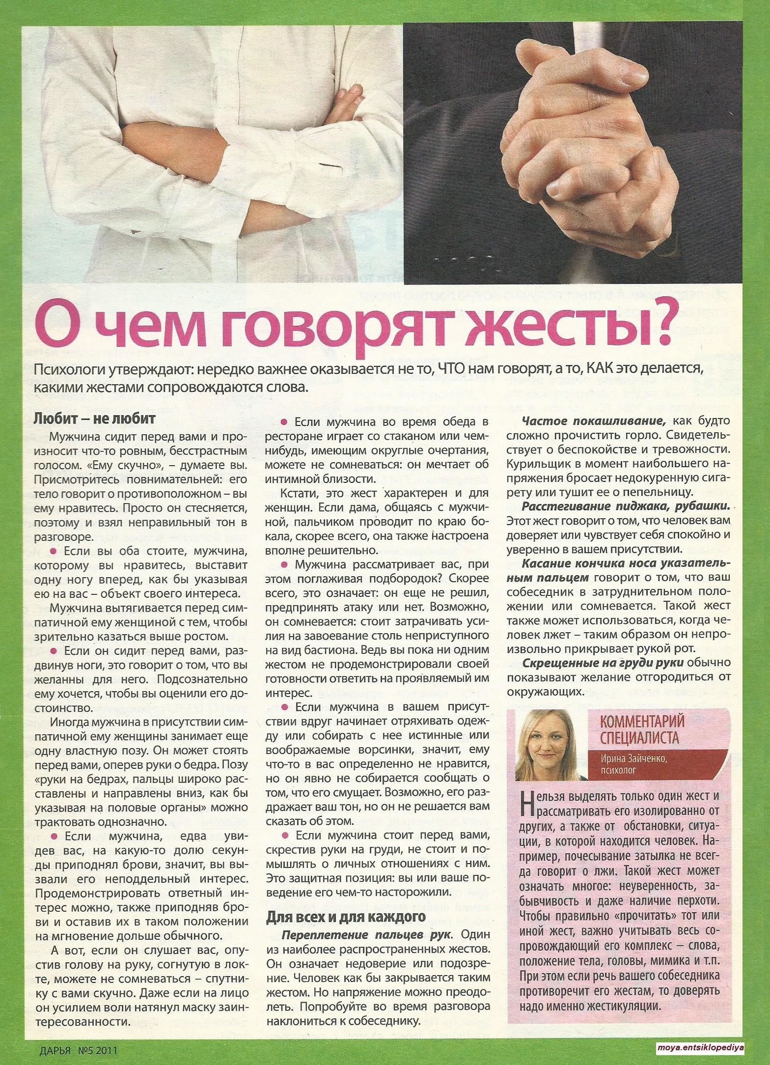 Свою речь человек может контролировать, а вот некоторые жесты бывают совершенно непроизвольными, без специального обучения их невозможно подделать, схитрить, — вот на них и следует обратить особое внимание. Язык жестов (или невербальное общение) – это не выдумка, а дополнительная возможность понять людей, с которыми приходится общаться.