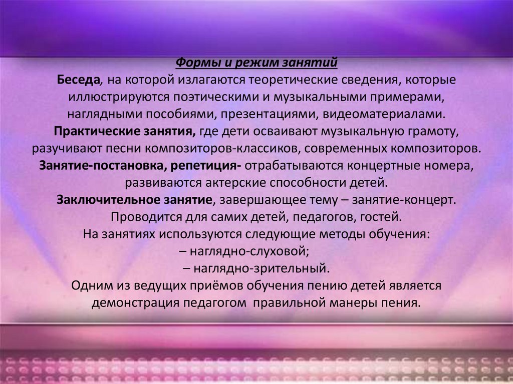 Не зная все тонкости своего голоса, далеко не каждый сможет выбрать себе песню адекватно, с которой он бы справился! Можно много привести примеров на тот счёт, что заниматься вокалом стоит с педагогом индивидуально! Потому что, всегда работает метод: рассказ, объяснение, показ! Даже хотя важен тот факт, что идёт энергетический контакт, обмен!