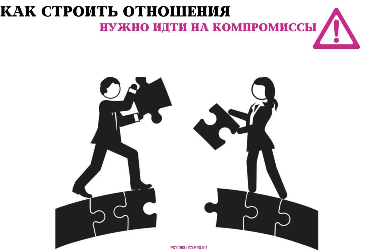 Отношения строятся на платформе компромиссов.Вы должны быть готовы пожертвовать своими ресурсами, эмоциями и материальными вещами, чтобы ваш партнер был счастлив или чувствовал себя комфортно. Насколько вам нужно заботиться о себе и быть счастливым, вам также нужно идти на компромисс со своими вкусами и предпочтениями, если они не в пользу вашего партнера. Партнер также должен пожертвовать собой, чтобы вы оба могли найти золотую середину. В конце концов вы столкнетесь с проблемами, если один из вас все время идет на компромисс, а другой не отвечает взаимностью.