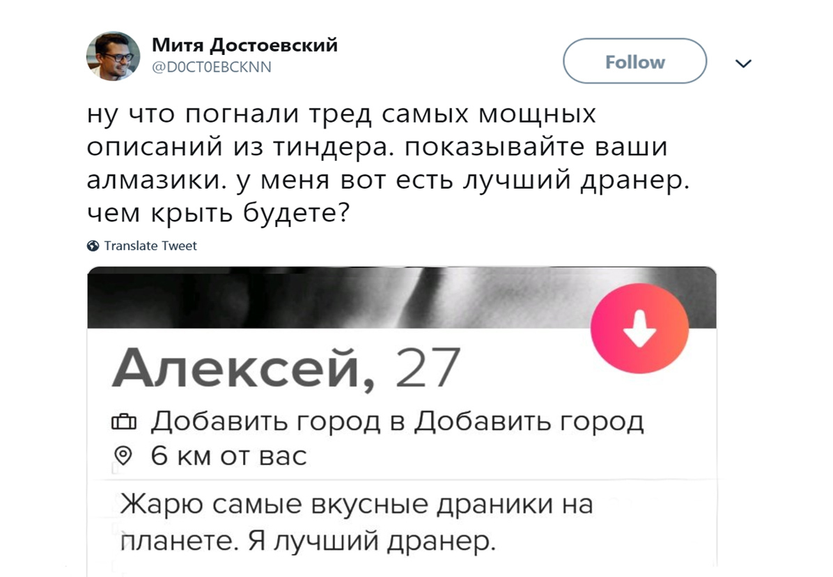 Пример профиля Tinder