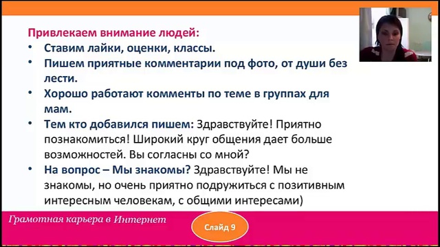 Попробуйте избежать долгих пауз, но и не стоит постоянно грузить собеседницу ненужными разговорами.