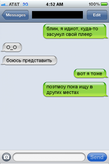 3. Мужчина написал женщине СМС: «Единственное, чего тебе Бог не дал, так это моего номера».