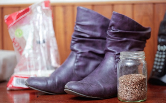 Способ, пришедший к нам из Дикого Запада. Возьмите обувь, которую хотите увеличить на пару размеров, плотно заполните зерном, залейте водой и оставьте на пару часов. Принцип простой — зерна поглощают влагу, разбухают и растягивают материал. Затем из обуви надо убрать наполнитель, тщательно протереть и разносить, пока изделие не высохнет.