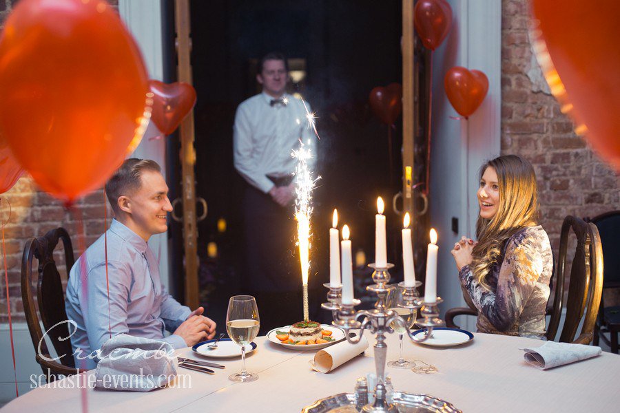 В зависимости от варианта, который вы выберете для предложения, это могут быть свечи, цветы, шарики, лепестки роз, фотографии, наклейки на стены.