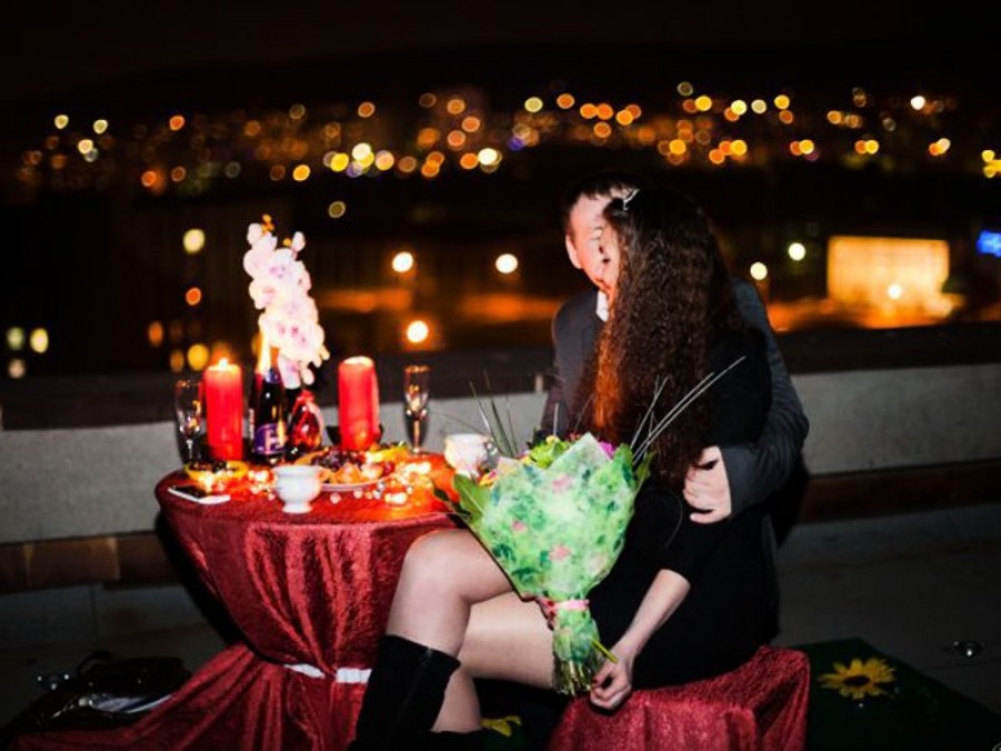 Звезды, огни большого города, вкусный ужин, звук пузырьков шампанского, аромат ее духов, приятное и волнительное сердцебиение в Вашей груди, медленный танец под аккомпанемент скрипача или саксофониста, нежные объятья и ласковые поцелуи.