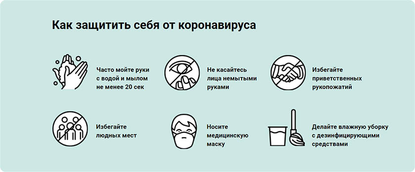 - Избегание контактов с людьми, у которых подозревается или подтвержден COVID-19