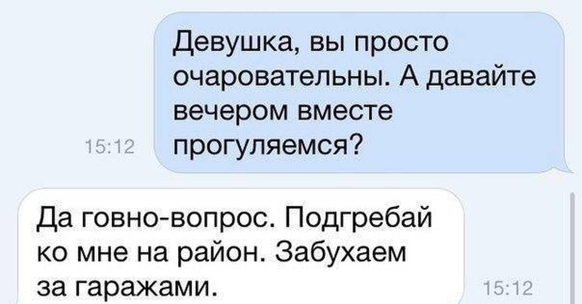 3. Когда этот парень увидел меня, у него испортилось настроение. Понравившись девушке, вы можете начать разговор, комментируя конкретно изображение или подсказку профиля. 03. Она все еще пишет тебе и иногда признается, что скучает по тебе. 5. Я никогда не понимал, насколько плохи люди в общении, пока не начал пользоваться приложениями для знакомств. Не ждите слишком долго, чтобы пригласить ее на свидание. Я всегда считал себя довольно порядочным в разговоре — я уверен, что есть люди, которые находят меня неуклюжим или просто не являются моими поклонниками по какой-либо причине.Я бы предложил спросить ее, не хочет ли она выпить кофе, или просто завязать разговор, чтобы все наладилось. Не делайте это как контракт. К формальным способам приветствия кого-либо относятся: Привет. Ваш бывший обращается к вам, потому что хочет чего-то от вас. Прогулки с милыми питомцами — отличная идея для второго свидания. Так что, если вы беспокоитесь о том, чтобы не зайти слишком сильно, спросив, не беспокойтесь.