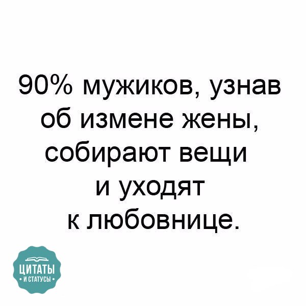 Рейтинг: 4.0; Голоса: 16 признаков неверности жены — Признаки измены девушки — Как проверить на верность Олег: Я знаю что жена мне изменяла не однократно и скорее всего изменяет я специально прикидываются шлангом и даже способствовал в некотором роде этому чтобы усыпить её бдительность и чтобы в итоге она облажалась в общем так и получилось ещё не разу этот дешёвый трюк не давал осечек к сожалению старший сын оказался в курсе а может и не к сожалению ведь теперь я могу совершенно спокойно заниматься тем же мне так даже удобнее а ей соскакивать не резон в итоге всё как мне кажется довольны ну даже если и не всё то мне пофиг так что не парьтесь ребята ну сами подумайте как клёво изменять жене а она тебе за это даже представить нормально не может и ты в глазах семьи весь такой несчастный белый и пушистый жертва а вы говорите разводится да я слава богу не расписан с ней с самого начала подозревал какую-то лажу зачем расходится это значит заново всё выстраивать и опять ждать пока лажанется вы чего думаете это за месяц что-ли происходит это очень кропотливая работа ещё и важно не переиграть у меня несколько месяцев ушло зато потом такие интересные вещи узнал вам ребят лучше и не знать даже 30% правды поверьте даже я удивился так что не спешите расходиться лучше аккуратно так об этом узнать а потом не делать ни чего а пару месяцев хорошенько всё обмозговать чтобы эмоции все по утихлиДата: 2023-03-23
