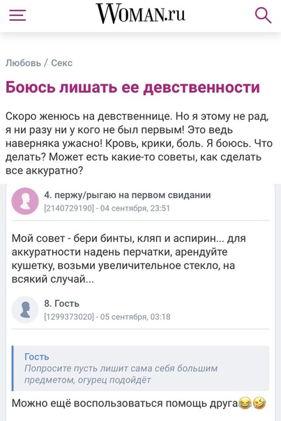 «[Мне не нравится] идея о том, что молодые женщины должны быть пассивными получателями секса», — говорит Эйслер. В слишком большей части мира женщины по-прежнему находятся под таким контролем.«Самое главное — обезопасить себя и делать то, что тебе нравится», — рекомендует Эйслер. «Не торопитесь и действительно знайте, какие сексуальные переживания действительно удобны для вас и вашего тела, что там происходит, и расслабьтесь по большей части». И уж точно не беспокойтесь о девственной плеве. Или отсутствие таковых.