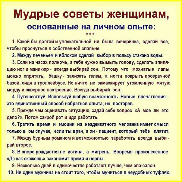 Тем не менее, для тех пар, которые остаются вместе, есть базовые вещи, которые помогут вам обоим. Джемма говорит, что воодушевление вашего партнера такими вещами, как физические упражнения, достаточный сон и сокращение потребления наркотиков и алкоголя, может очень помочь. А еще есть размышления, точнее их идеальное отсутствие. Psychology Today описывает размышления как «повторение мысли или проблемы без завершения». Это может включать сидение и тушение вещей из прошлого или проблем настоящего.Итак, Джемма рекомендует «вести себя вежливо и активно, а в будущем стараться поощрять позитивный разговор и решение проблем».