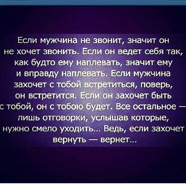 Отпускайте своего парня и не названивайте по 300 раз за вечер, ваши многочисленные звонки и сообщения наоборот оттолкнут мужчину и ему не захочется возвращаться. Мужчины не любят, когда что-то происходит не по их воле. - Жесты. Мужчинам не свойственна активная жестикуляция, поэтому важно наблюдать за жестами партнера – они говорят о многом. Если мужчина заинтересован, то он постоянно будет смотреть в ее глаза и желать касаться.