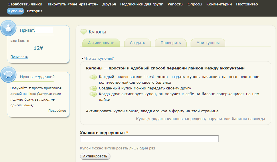 Так, можно обратиться к специальным сайтам по накрутке, например, likest.tu. Чтобы воспользоваться этим методом, необходимо зарегистрироваться на портале и нажимать сердечки по запросу других пользователей. Тем самым на ваш счет вы будете получать сердца, которые вернутся лайком по созданному заданию.