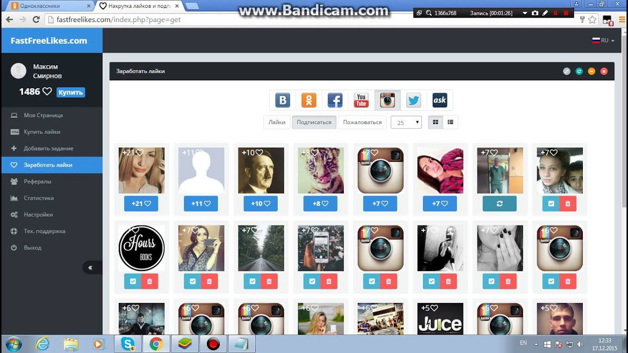 Выполнение заданий на накрутку лайков и подписчиков других пользователей