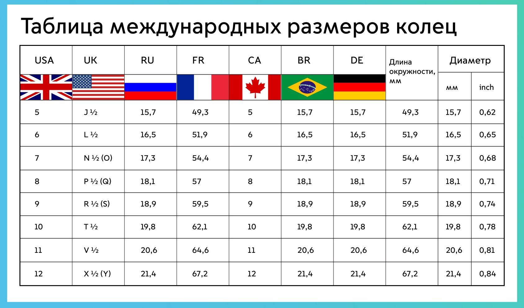 На Алиэкспресс размеры колец указаны по американской системе, но, поскольку покупатели сайта — пользователи из разных стран, в таблице размеров указывается значение размера и его соответствие различным международным значениям, а также окружность пальца в миллиметрах. С помощью размерной сетки можно подобрать размер женского кольца практически точь-в-точь.