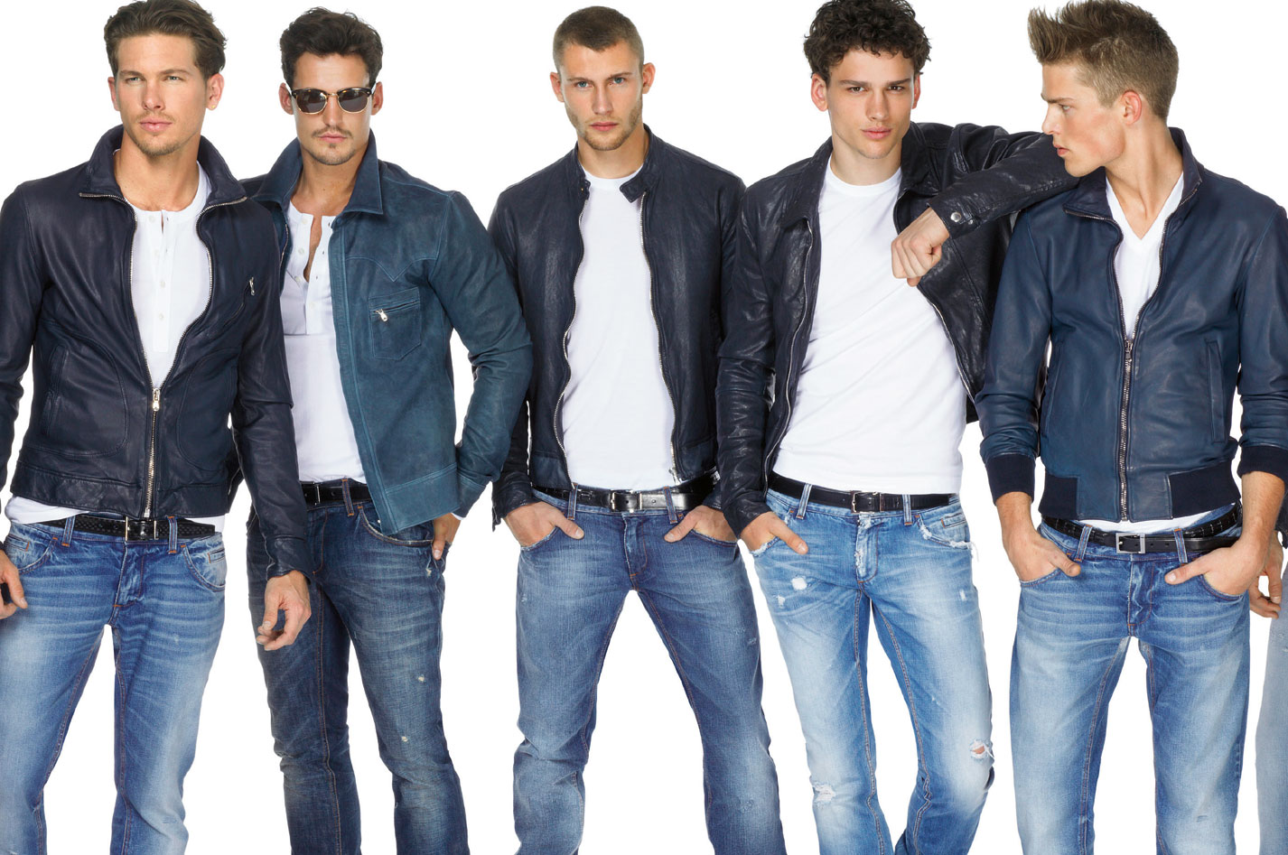 Хорошо сидящие джинсы в темных и светлых тонах.