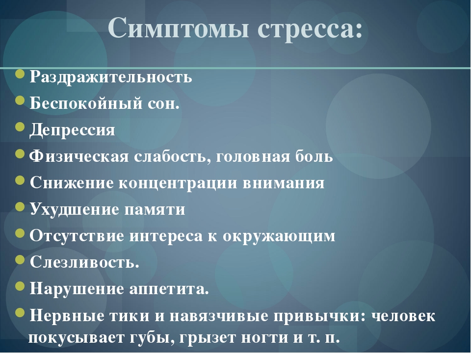 Стресс может быть вызван либо серьезными потрясениями и жизненными событиями, такими как развод, безработица, переезд и тяжелая утрата, либо серией незначительных раздражителей, таких как чувство недооценки на работе или споры с членом семьи.16 Иногда очевидных причин нет. .