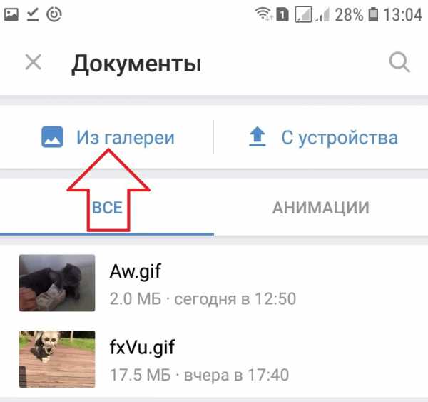 Далее, вам нужно нажать на вкладку Из галереи, чтобы выбрать gif файл на своём телефоне.