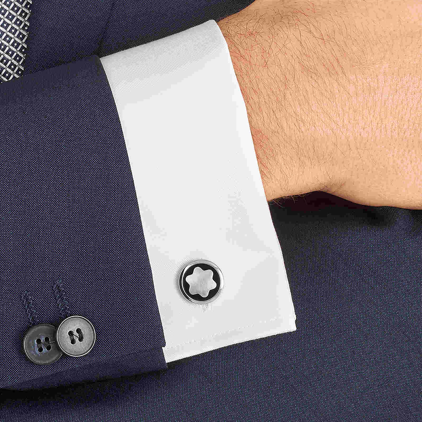 Классическое сочетание – строгий костюм черного, темно-синего или темно-серого оттенка, белая рубашка и запонки с черным агатом или серебристые.По правилам этикета, длина рукава пиджака должны быть на пару сантиметров меньше, чем длина рукава рубашки.