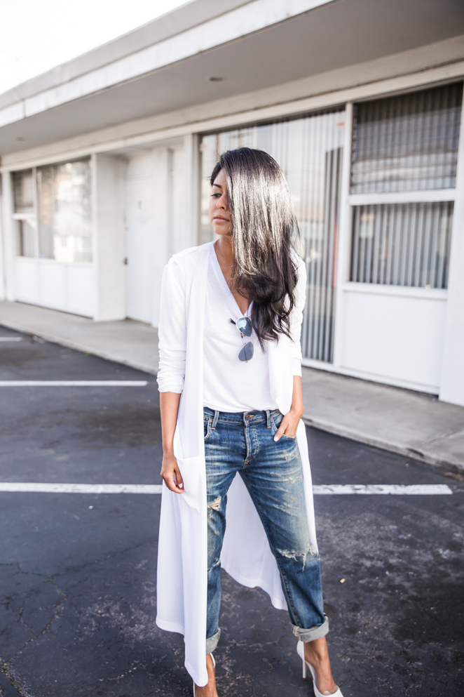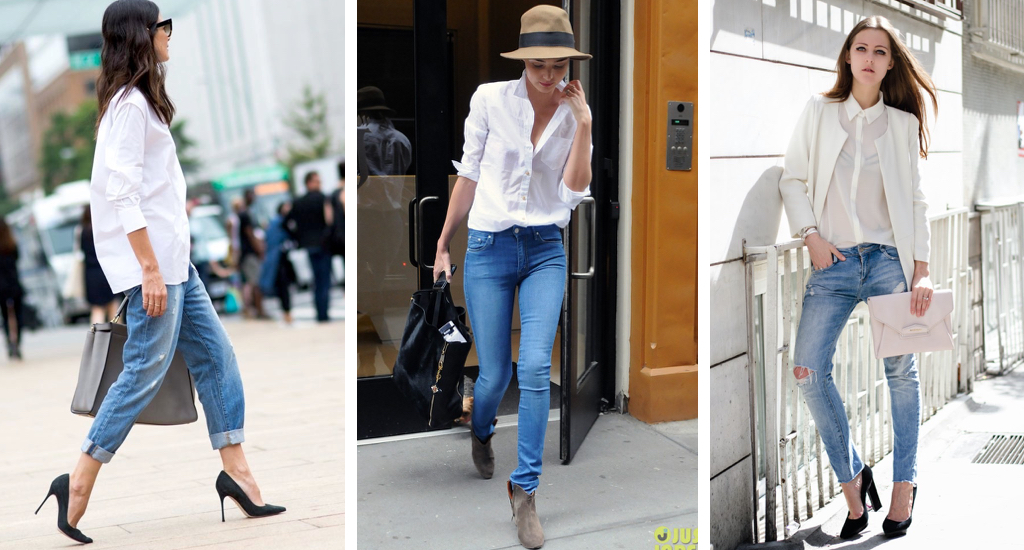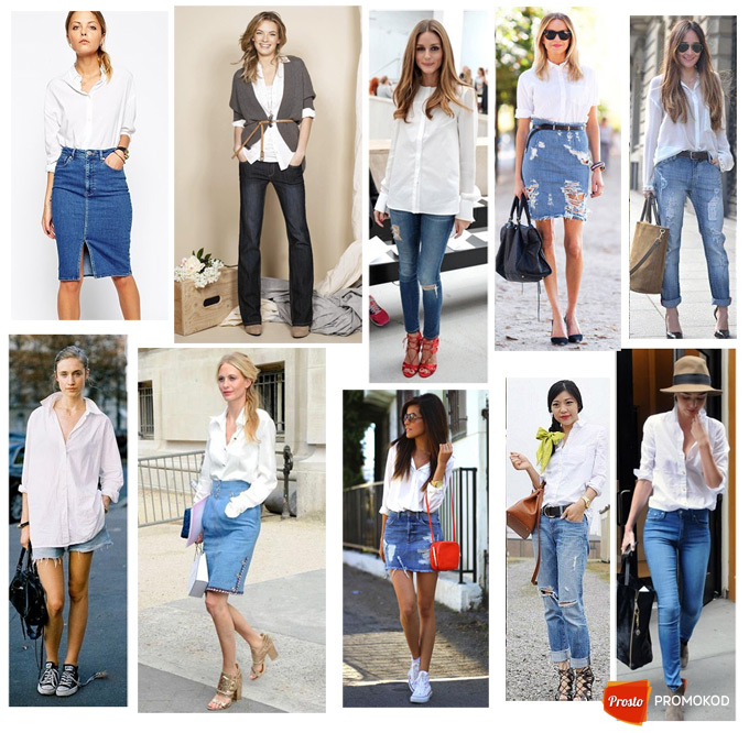 Белая рубашка с джинсами подойдет как для офиса, так и для повседневной жизни, если хочешь сделать образ чуть более праздничным. Совершенно незаменима эта вещь и для фотосессии.