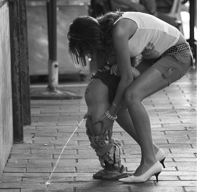 Второй, не менее распространённый способ, который применяется очень давно и его, пожалуй, можно назвать бабушкиным методом – это писать, раздвинув ноги.