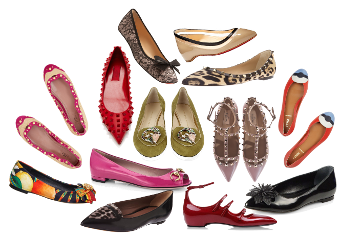 Балетки — обувь на плоской подошве с круглым носиком и без разных шнурков и ремешков. Они очень удобные, почти как домашние тапки. Почти такие же как балетки существуют и слипоны — единственное различие в подошве. В слипонах она резиновая. Главным в слипонах считают именно принт, хотя делают и одноцветные варианты. Дополнением к классическому городскому стилю могут быть мокасины — те же балетки, но с четырехугольным пришитым носиком. Родственниками мокасинам считают топсайдеры. Единственное отличие- наявность декоративного шнурка сверху.