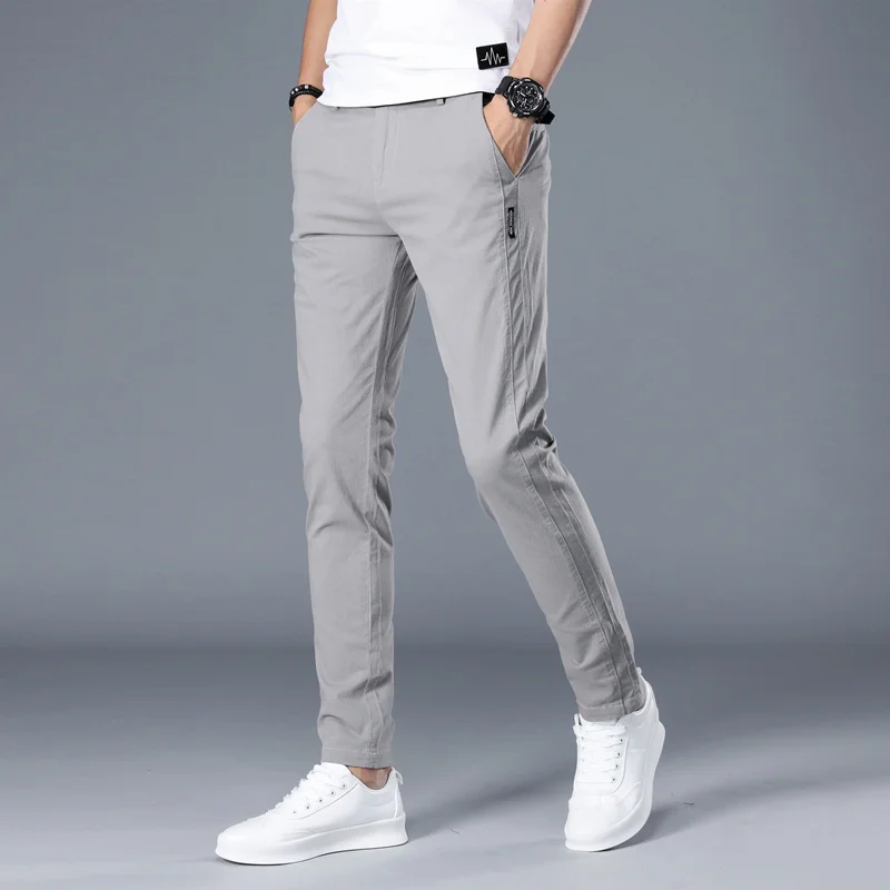Предпочтительны прямые или слегка суженные стили мужских брюк.