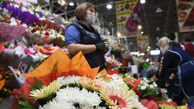 Перед 8 Марта прилавки магазинов усыпаны цветами.