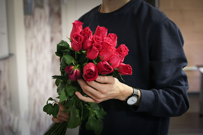 - Вид растений. Молодым людям покупают практически все, кроме луговых цветов и кремовых роз. Иногда их используют для дополнения флористической композиции, но отдельно не дарят.