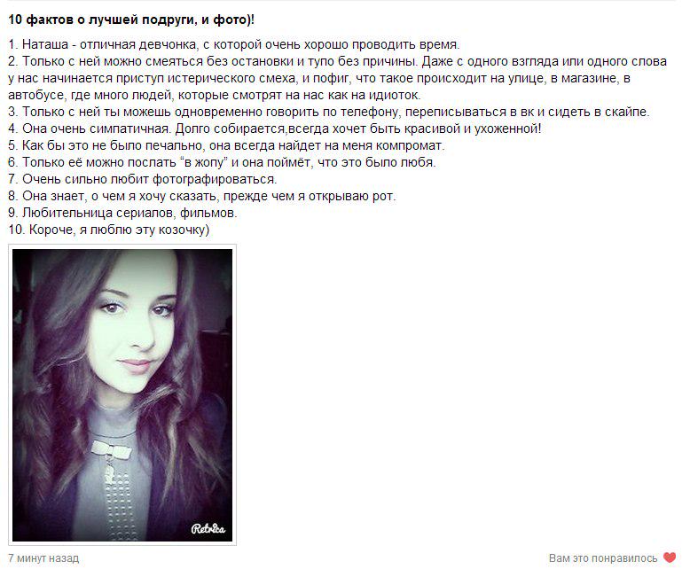 Какие можно написать факты о девушке: Какие факты можно написать о подруге