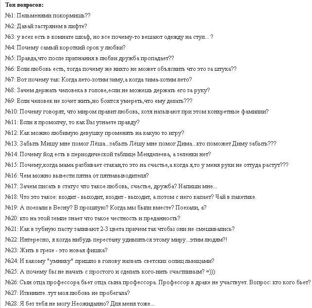 Это могут быть философские или просто прикольные вопросы «ни о чем».
