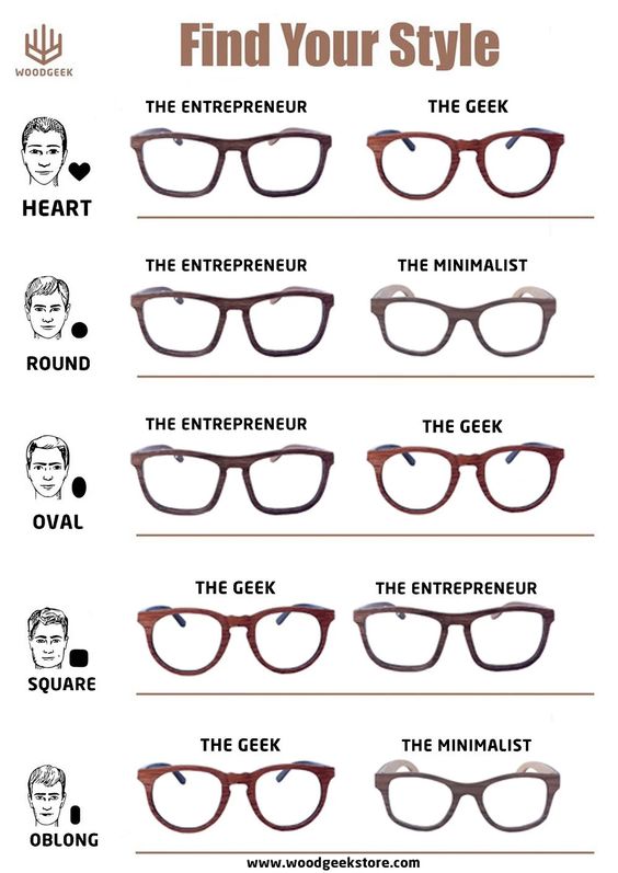 Возможно, вы захотите рассмотреть овальные и круглые оправы, изогнутые оправы и оправы без оправы, выдающиеся оправы во всю оправу, толстые оправы, а также очки с широкой носовой частью и низко посаженными дужками. Из-за выступающей оправы продольное лицо кажется короче. Линзы большего размера также скроют ваши длинные черты лица, создав приятный оптический эффект.