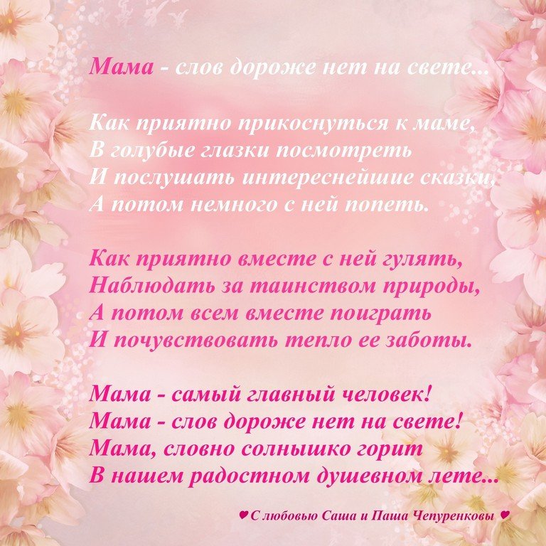 И главное — подбирайте слова от души. Такие сообщения самые важные и трогательные.