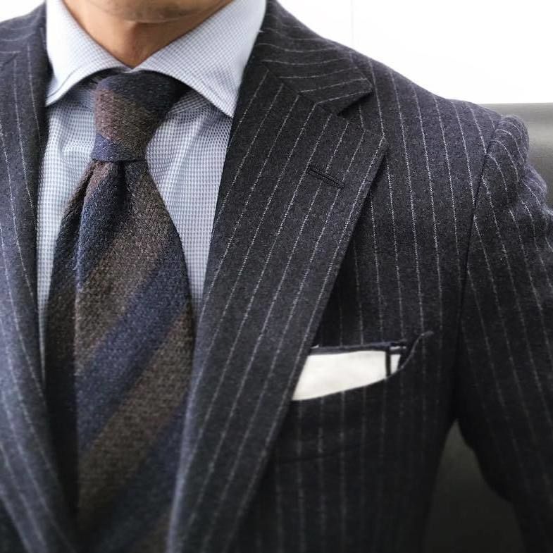 Подходит как к современным, так и консервативным костюмам.Выбирая узор галстука под узор рубашки, главное — это сделать линии или клетку на галстуке разной по толщине с линиями или клетками на рубашке. Лучше всего сделать так, чтобы на галстуке были более толстые линии. Вообще правильно подобрать галстук в полоску под рубашку в полоску достаточно сложно, поэтому лучше использовать разные текстуры на галстуке и рубашке.
