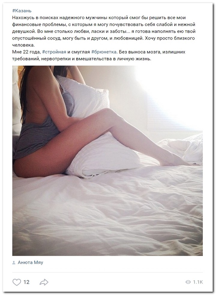 И щу женщину с активной жизненной позицией. Миссионерскую не предлагать.