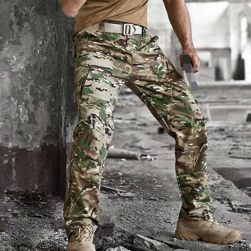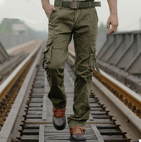 Мужские штаны карго имеют прямой крой (есть модели на резинке снизу) и шьются из прочной ткани. Изделие дополняется несколькими карманами в области бедра или на икрах. Изначально это был элемент военной одежды, но со временем карго стали носить все
