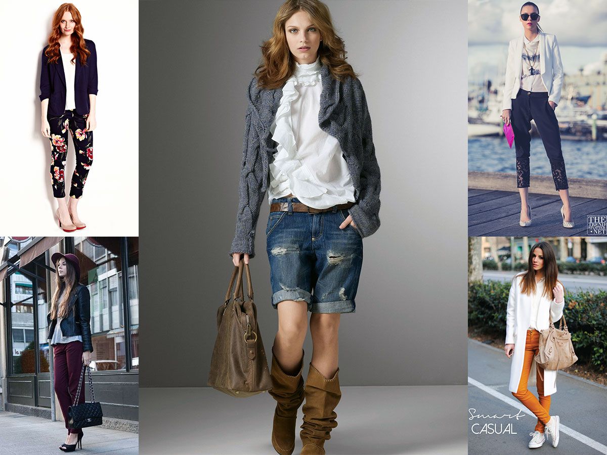 Эксперт по персоналу Сьюзен М. Хитфилд пишет в журнале About.com статья: «Умный повседневный образ обеспечивает гибкость для личного вкуса в моде и включает в себя куртки, украшения, улучшающие внешний вид, классические брюки, классические рубашки, юбки, сшитые на заказ свитера, жилеты, галстуки, соответствующие кожаные аксессуары и кожаные натяжки на туфлях и сапогах.