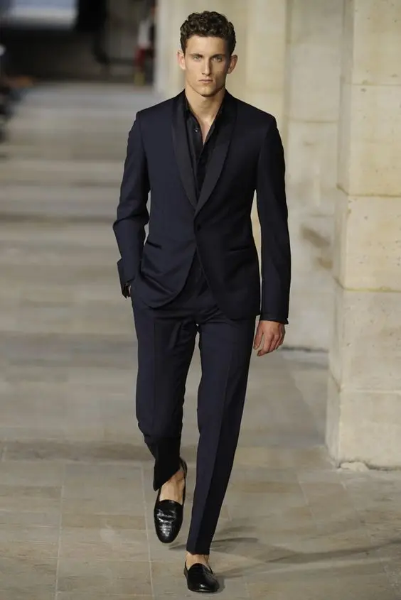 Вы можете придерживаться консервативного дресс-кода и вместо этого выбрать черный костюм в сочетании с белой рубашкой и черными кожаными туфлями.