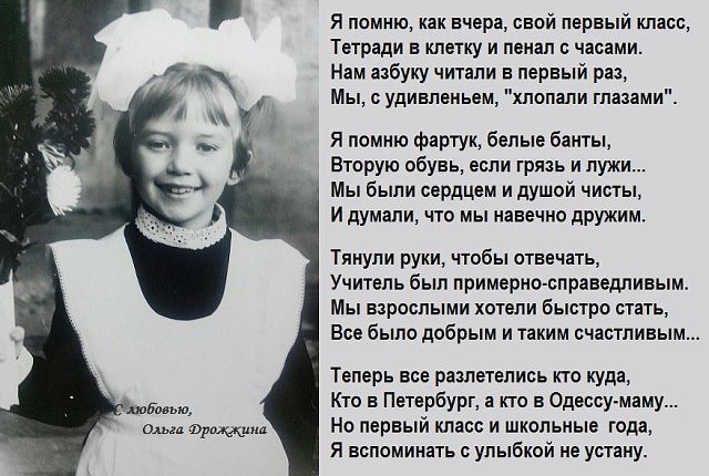 Каждый из нас наверняка согласится с тем, что воспоминание о первом учителе — одно из самых ярких в жизни. Вот и мы помним всё , как будто это было вчера. Первое сентября, страх и любопытство перед тем неизвестным, что ждёт за порогом школы. Но вот наша первая учительница Ольга Ивановна — юная, стройная, красивая и улыбчивая, встречает нас, и сразу становится лучшим другом и наставником. С ней ничего не страшно и всё по плечу. Она строгая и ласковая, терпеливая и чуткая. Умела и пожурить, и пожалеть, подбодрить и утешить.
