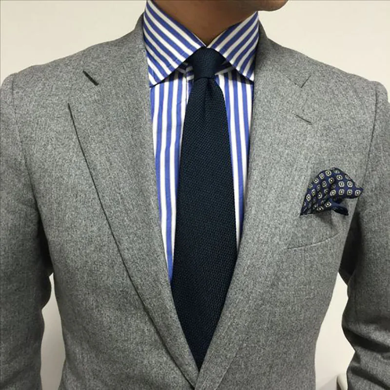 Главное здесь то, что, как и выбранный вами оттенок серого, текстура ткани будет влиять на то, насколько официальным или повседневным будет выглядеть костюм.
