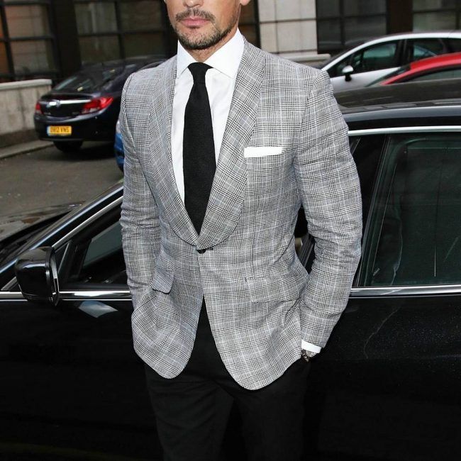 Еще один способ смягчить формальность серого костюма — выбрать его с рисунком, например, в клетку.
