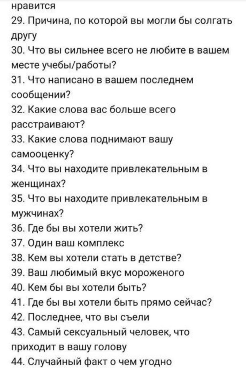 Какие интимные вопросы задать девушке? Здесь ты найдешь список из 50 вопросов и некоторые рекомендации от том, как#16 Насколько важно для тебя физическое влечение между парнем и девушкой? #17 Тебя бы задело, если бы узнала, что я все еще испытываю.