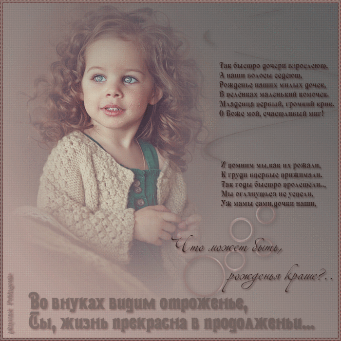 В еще неосознанном возрасте до трех лет принято упоминать в пожеланиях о родителях и о том, как важен им маленький ребенок. В более старшем возрасте обычно желают успехов в образовании, налаживании дружеских и семейных отношений, а также здоровья. Хорошие пожелания на день рождения для подростка (Алине, Анечке, Арине, Алисе, Александре, Ане, Оле, Наде, Юле, Арише и др.) могут стать стимулом, словами поддержки и самым ценным знаком внимания.